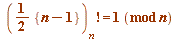 | `The final column show the residue of GAUSS FACTORIAL ({n-1}/2)[n]! mod n.` |