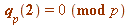 q||p := (2^(p-1) - 1)/p: L := [op(L), p]: fi od: print(``); print(array([['p', ``, ``, 'q[p](2)'], seq([p, ``, ``, q||p], p = L)])): print(``); |